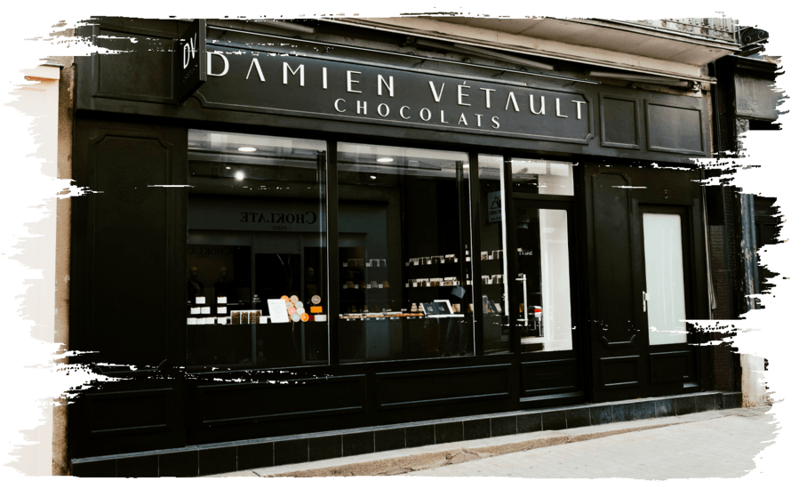 Un espace urbain et chaleureux, fidèle à la signature Damien Vétault Chocolats : authenticité, exigence et liberté du goût.